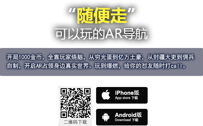 隨便走是一款輕量級(jí)的“AR全息實(shí)景”本地生活應(yīng)用。它改寫了導(dǎo)航就必須有地圖的一貫?zāi)J?,顛覆了手機(jī)導(dǎo)航領(lǐng)域的固有格局。你可以跟著它找你周邊的任何一個(gè)地方,無論是美食、酒店、公交、廁所、景點(diǎn)等等。只有你想不到,沒有它找不到。隨便走無疑是通過AR技術(shù)透視周邊生活的最佳工具,是當(dāng)前移動(dòng)互聯(lián)網(wǎng)本地生活領(lǐng)域的新標(biāo)桿! 新版本探索●覺醒更是加入了周邊生活探索功能、商家簽到、用戶角色等級(jí)趣味性功能。探索周邊,掃描周邊商家即可升級(jí)以及獲得勛章。當(dāng)你拿著手機(jī)橫掃周邊的時(shí)候,就會(huì)說不定有驚喜跳到你的眼前哦!這也是AR技術(shù)的一大特點(diǎn)之一!這也代表著隨便走向用戶開放AR交互游戲功能,在趣味中發(fā)現(xiàn)生活。想想既能夠真正幫到我們,又能在過程中獲得游戲當(dāng)中升級(jí)授勛的樂趣,何樂而不為呢?來吧,一起跟著隨便走去升級(jí)打怪吧!